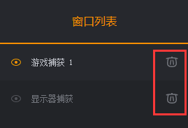 点击窗口名称前眼睛,可以隐藏当前窗口;选中窗口,按住鼠标左键拖动可调整窗口前后顺序;点击窗口名称右侧删除按钮,可以删除当前窗口。