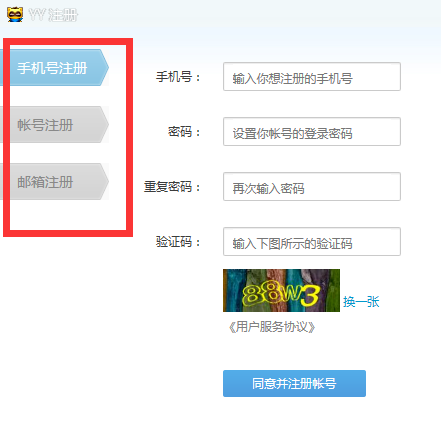 2、YY语音有三种注册方式,大家可随意选择一种注册