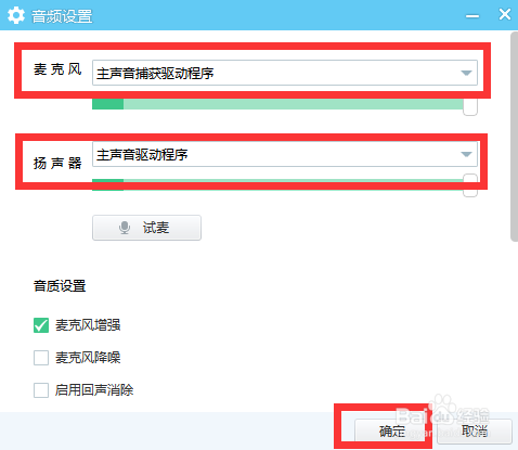 10、麦克风通道和扬声器通道都选择电脑默认通道就可以了