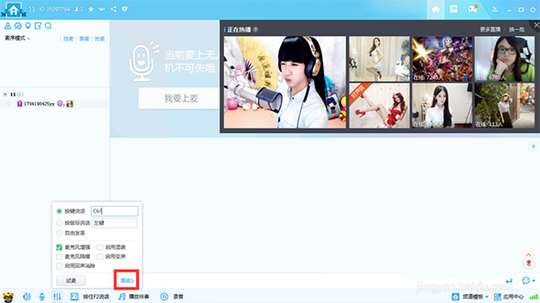 14、第四个图标是按键说话,快捷键可以自己改,设置为按键说话的时候要一直按住说话对方才能听到,当然也可以鼠标点一下,那样就会一直处于语音状态