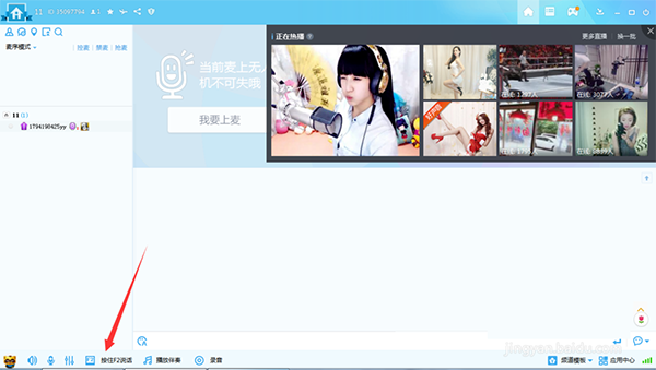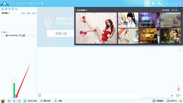 7、左下角第二个图标是麦克风,可调节YY麦克风声音大小