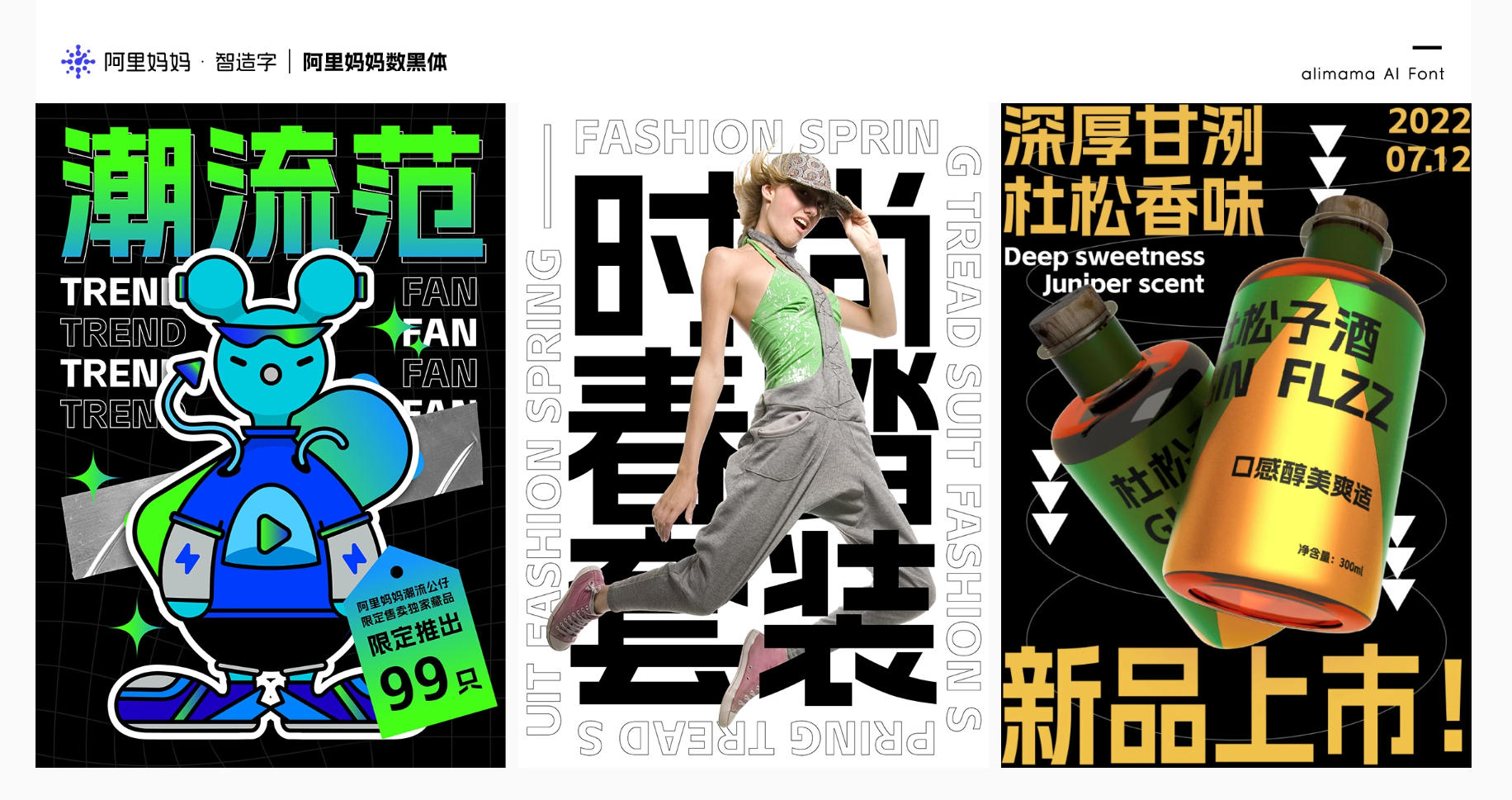 阿里妈妈·智造字自产自研打造了第一款AI字体产品——阿里妈妈数黑体正式上线。这款字的生成是人机协同工作的成果,设计原型,智能参与,人工干预,人机循环优化,直到最终生成满意标准字库。 数黑体是基于阿里妈妈营销应用场景下产生的营销字体,通用性和易用性强,适用于多品类商品,更高效的解决了电商类平台的用字需求。